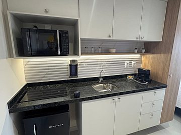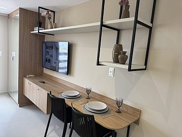 Flat decorado de 23 m2 quando você conhece em obra, acha que não cabe nada. E ver o decorado fica impressionado que parece maior.
