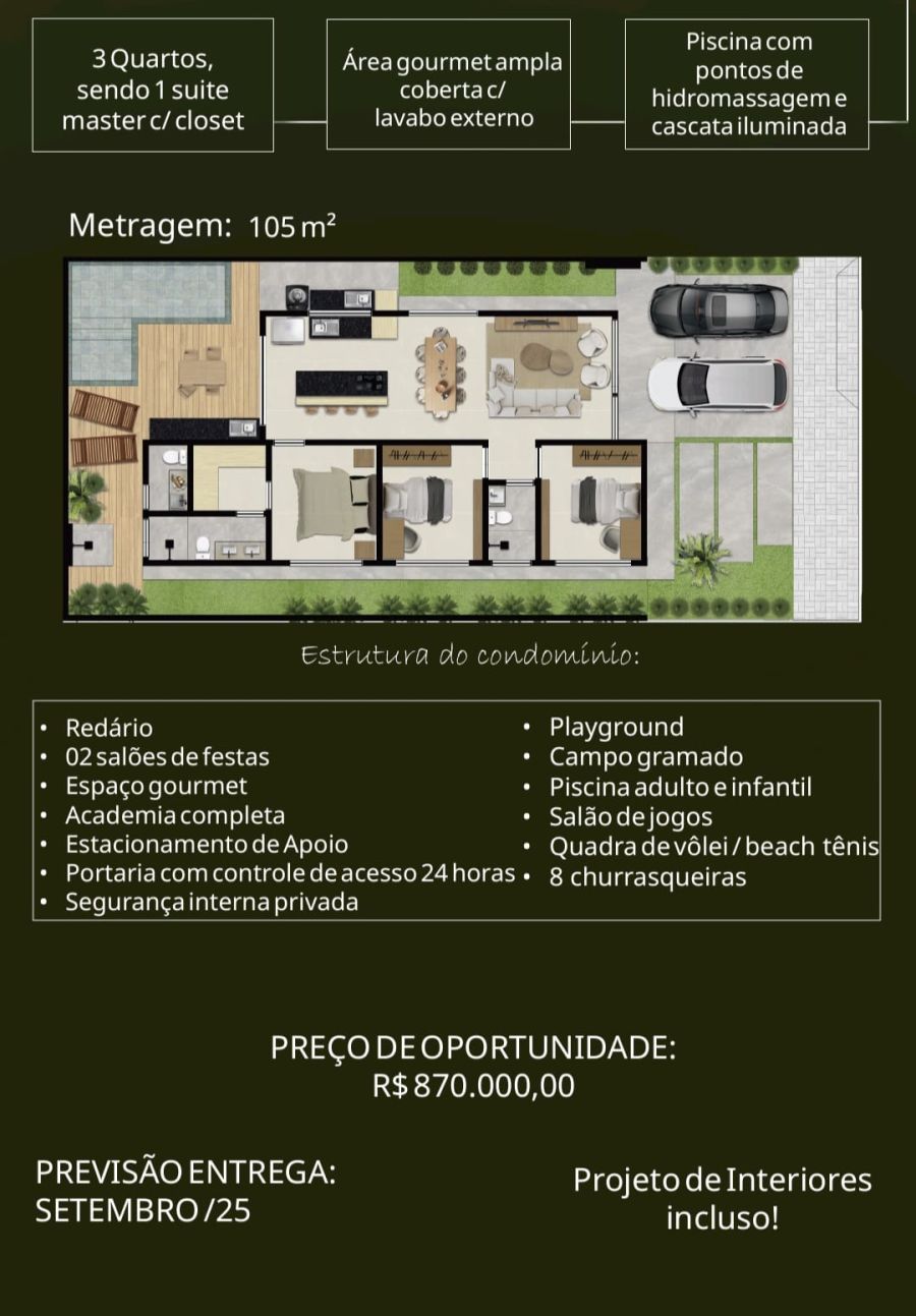 - Área Total: 105 m² (R$ 8.285/m²)