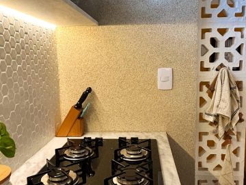 Com móveis projetados, piso vinílico, cooktop e forno elétricos, ar condicionado, fechadura eletrônica, chuveiro elétrico, tudo novo!